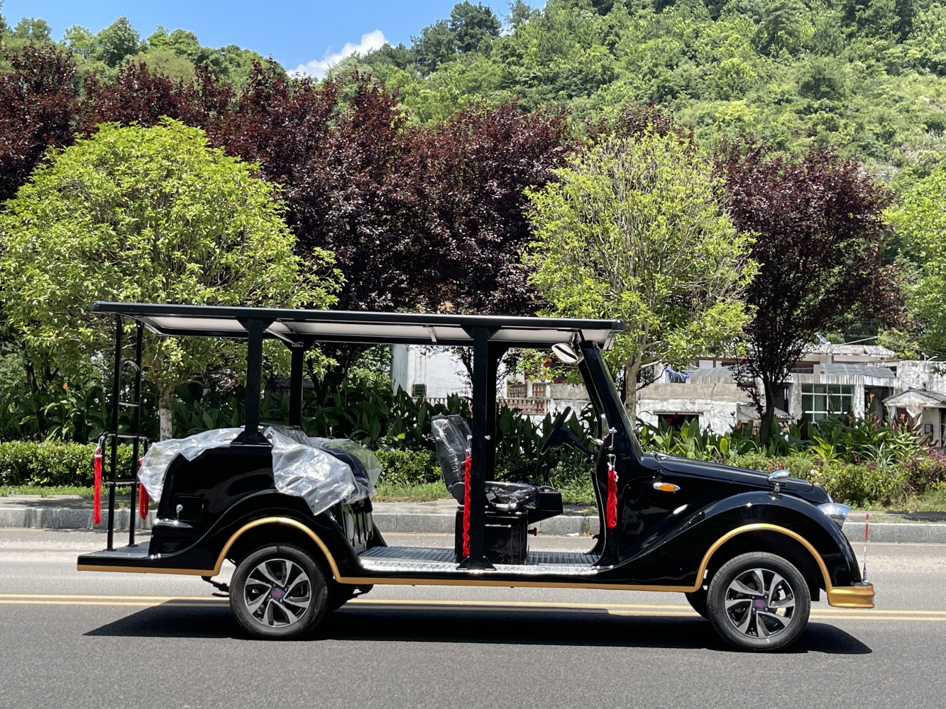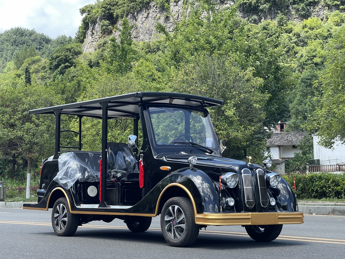 電動老爺車,是專為旅游景區(qū)、公園、大型游樂場、封閉小區(qū)、校園、花園式酒店、度假村、別墅區(qū)、城市步行街、機(jī)場、港口、碼頭等開發(fā)的環(huán)保型乘用車輛。具有性能卓越、外觀設(shè)計新穎、內(nèi)飾豪華精致、乘坐舒適安全的特點(diǎn),是理想的場內(nèi)電動觀光車。