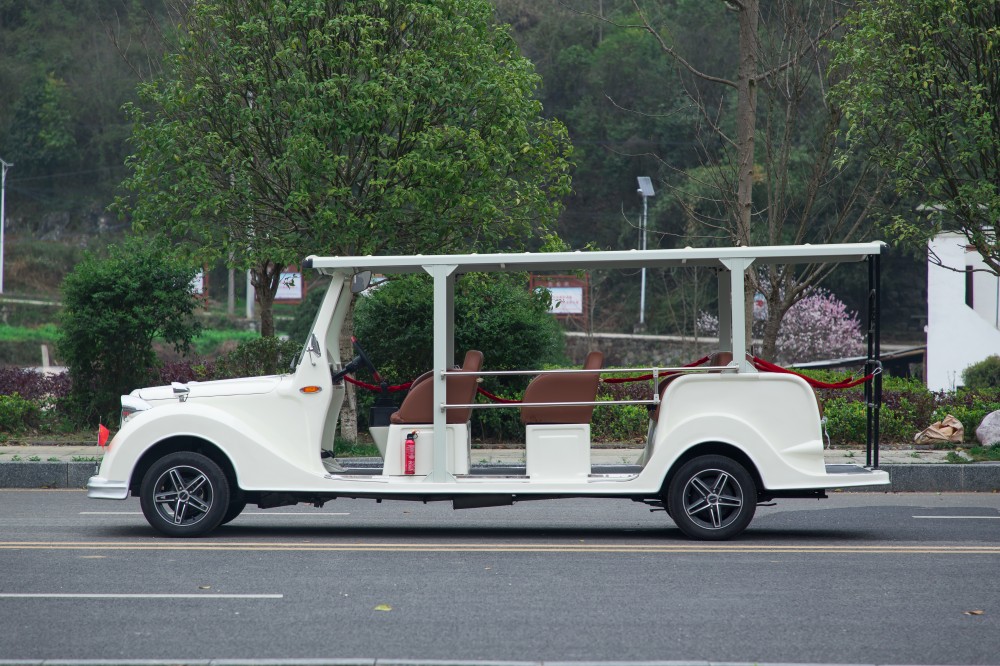 電動老爺車,是專為旅游景區(qū)、公園、大型游樂場、封閉小區(qū)、校園、花園式酒店、度假村、別墅區(qū)、城市步行街、機場、港口、碼頭等開發(fā)的環(huán)保型乘用車輛。具有性能卓越、外觀設計新穎、內飾豪華精致、乘坐舒適安全的特點,是理想的場內電動觀光車。